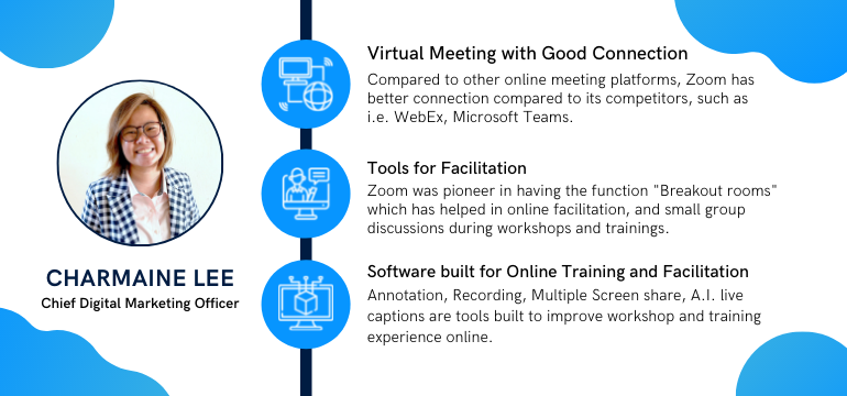 Zoom was pioneer in having the function "Breakout rooms" which has helped in online facilitation, and small group discussions during workshops and trainings.